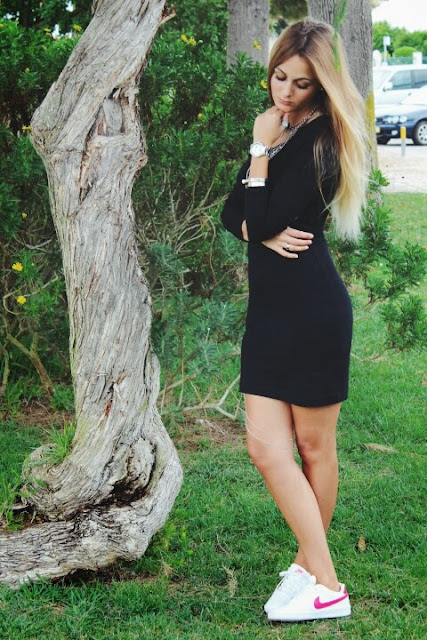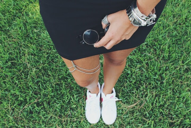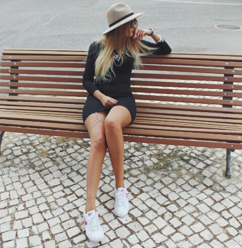 Como sou uma mulher prática e gosto sobretudo de me sentir confortável, decidi combina-lo com uns Ténis brancos da NIKE e dar um look mais sofisticado com os acessórios em prata. O chapéu em tons nude da PRIMARK fechou o look com chave d'ouro.
